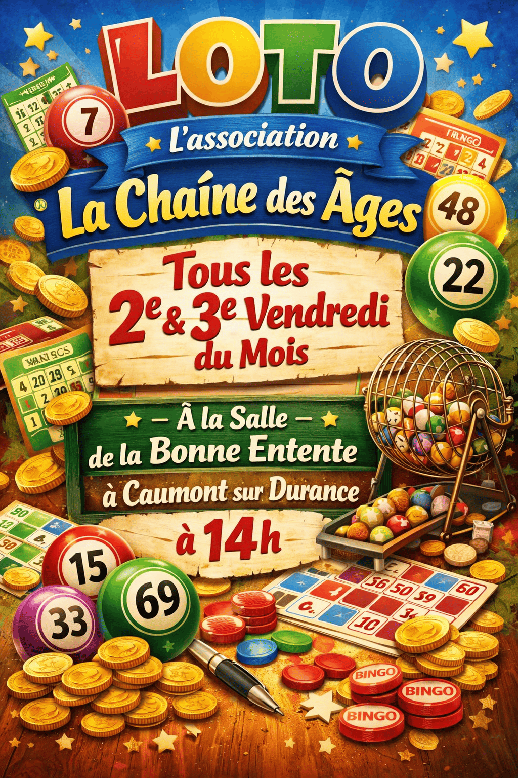 Tous les 2èmes et 3èmes vendredi du mois, l'association de la Chaîne des Âges organise sont loto.