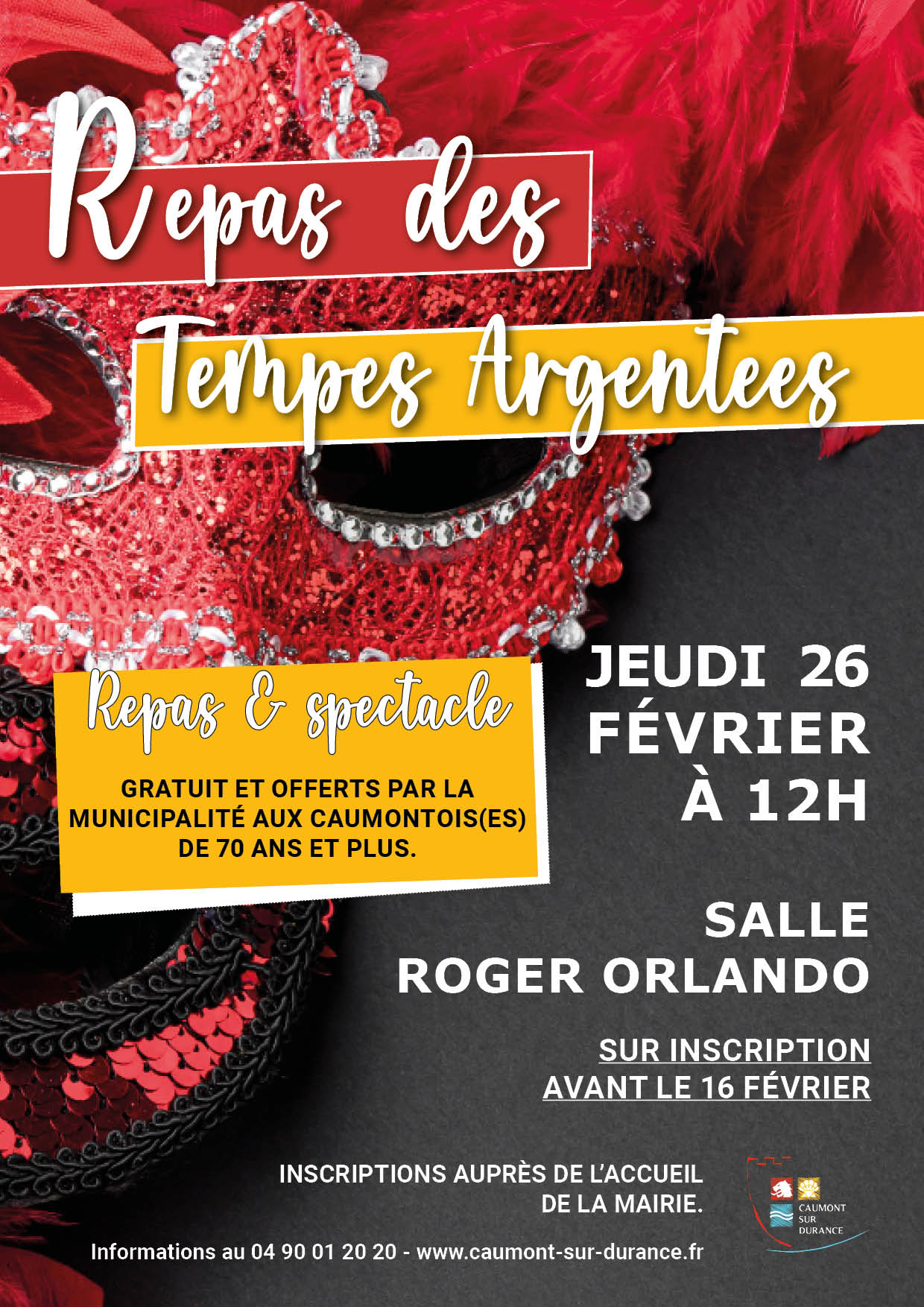 Véritable réussite et tradition installée depuis plusieurs années, ce repas est offert à tous les Caumontoises et Caumontois de 70 ans et plus. Chaque année, le Maire, Claude Morel et son Conseil municipal les invitent à partager un moment de convivialité autour d’un repas et d’un spectacle de cabaret, music-hall. Les plus gaillards pourront même faire quelques pas de danse sur la piste pour terminer la journée.